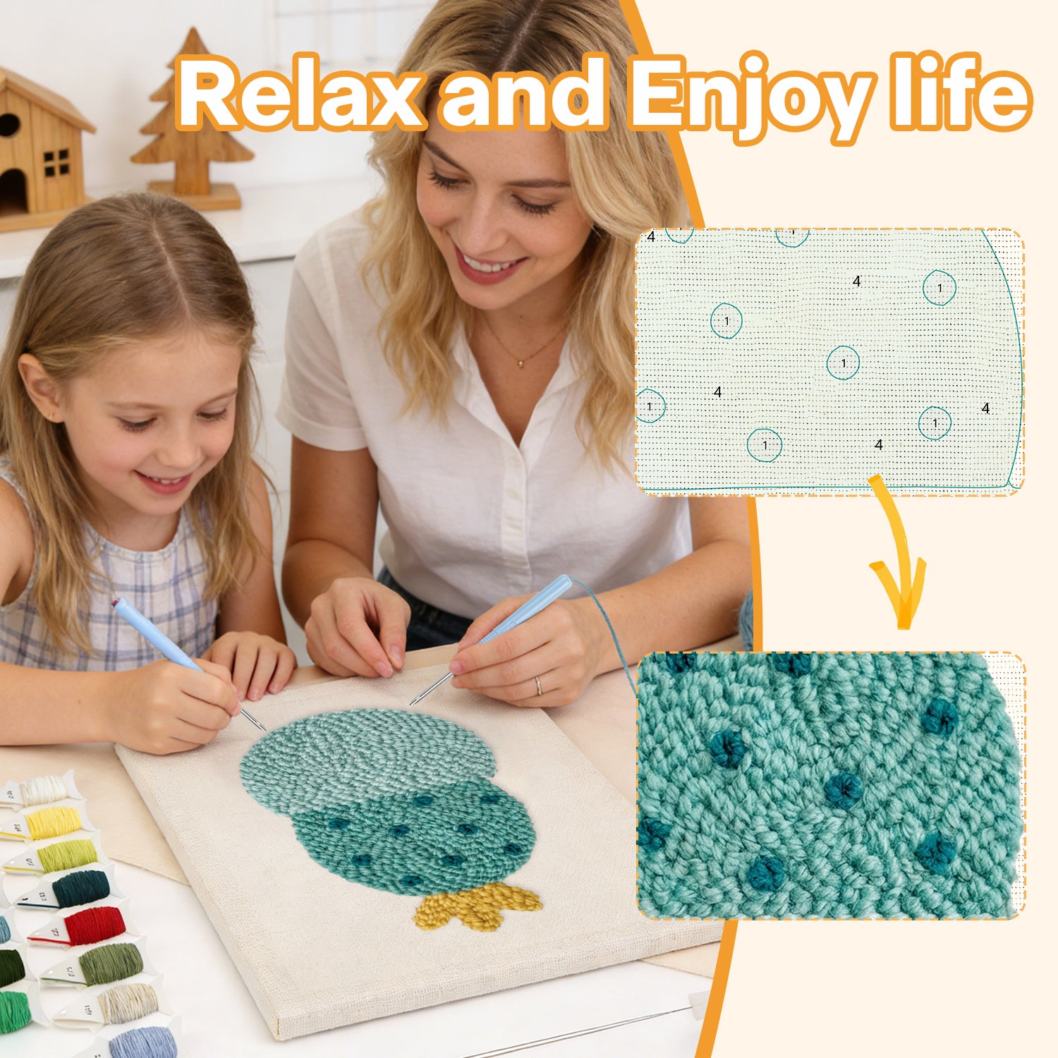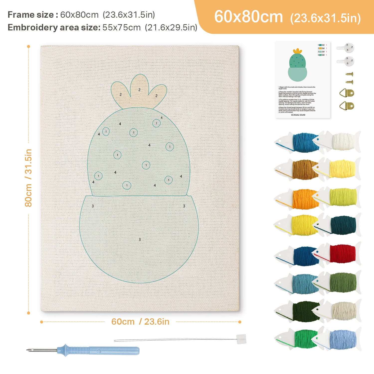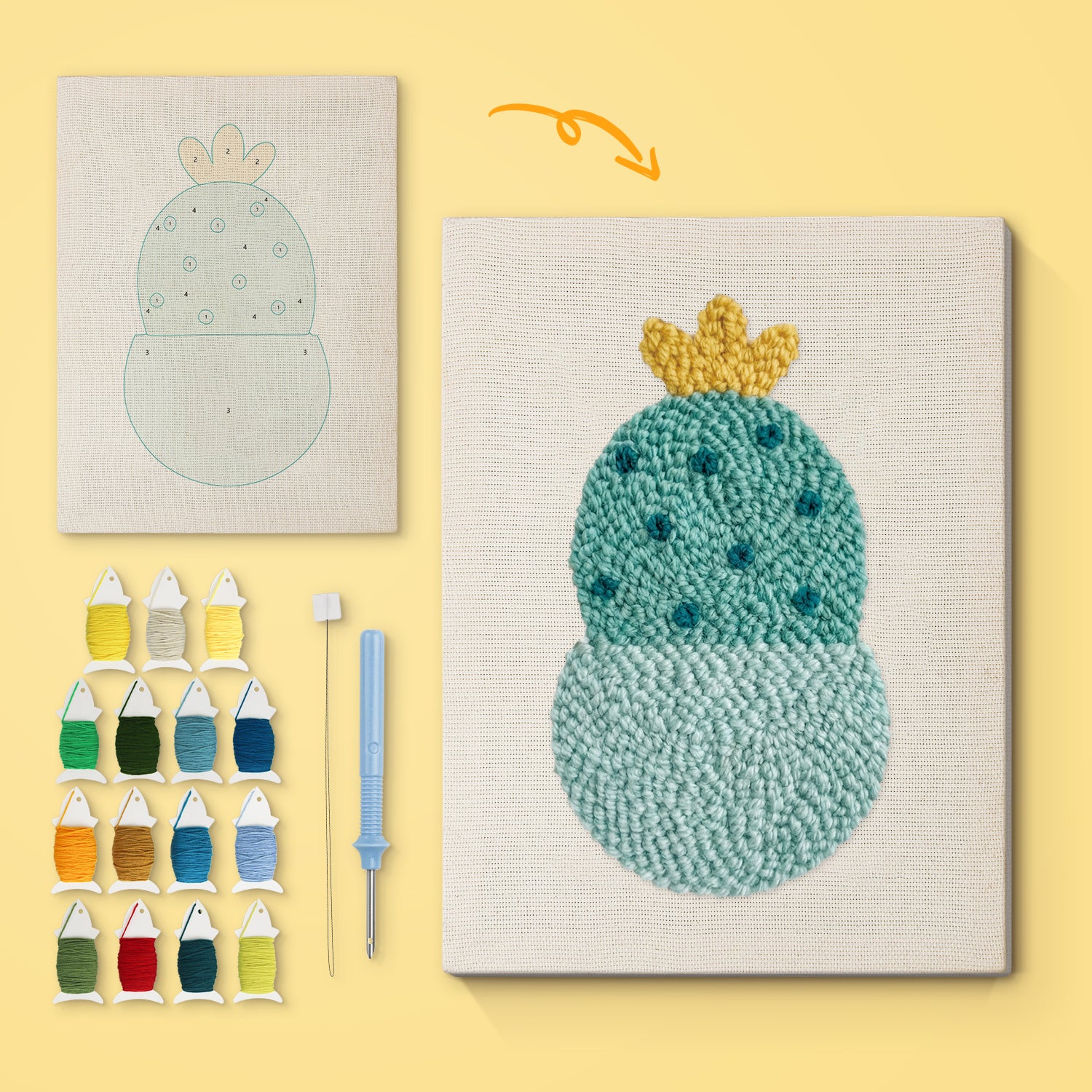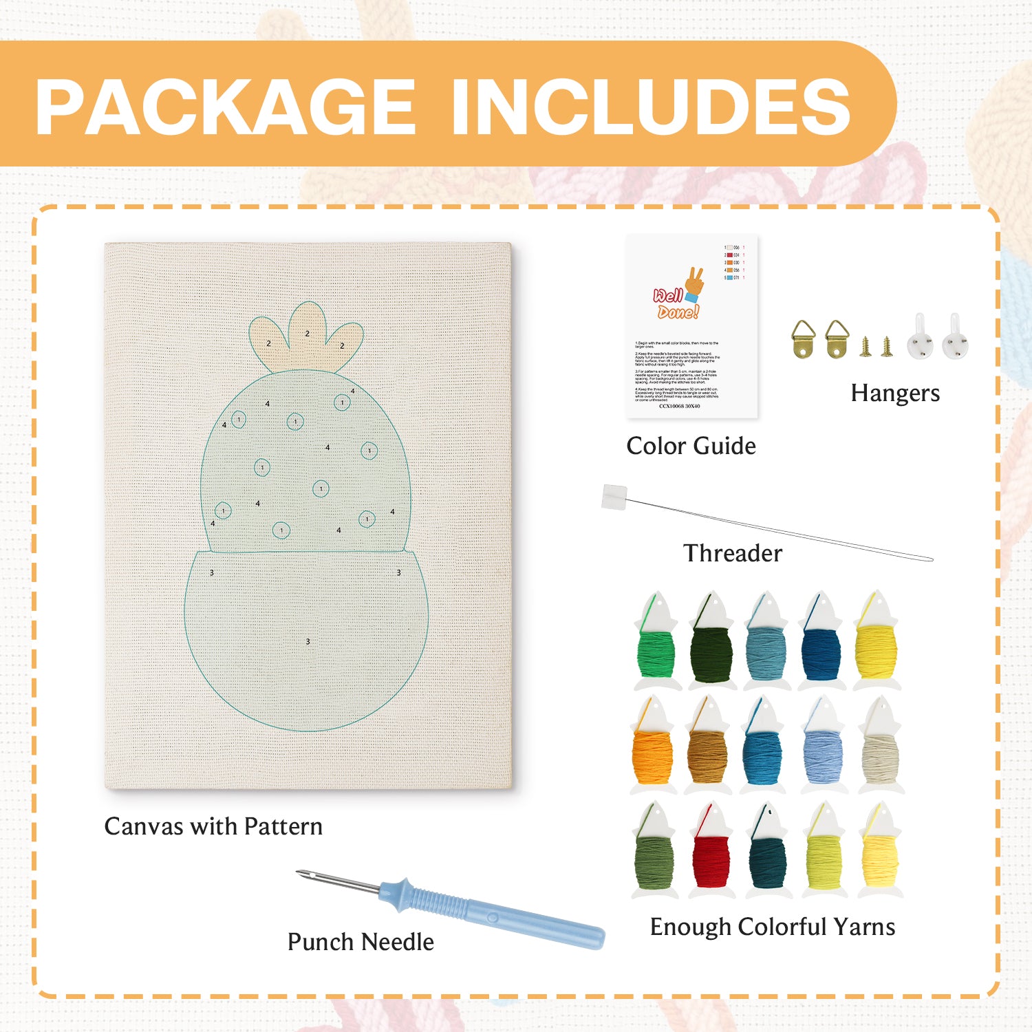 Enjoy premium fabric, durable punch needles, and vibrant threads—all carefully selected for the best crafting experience.