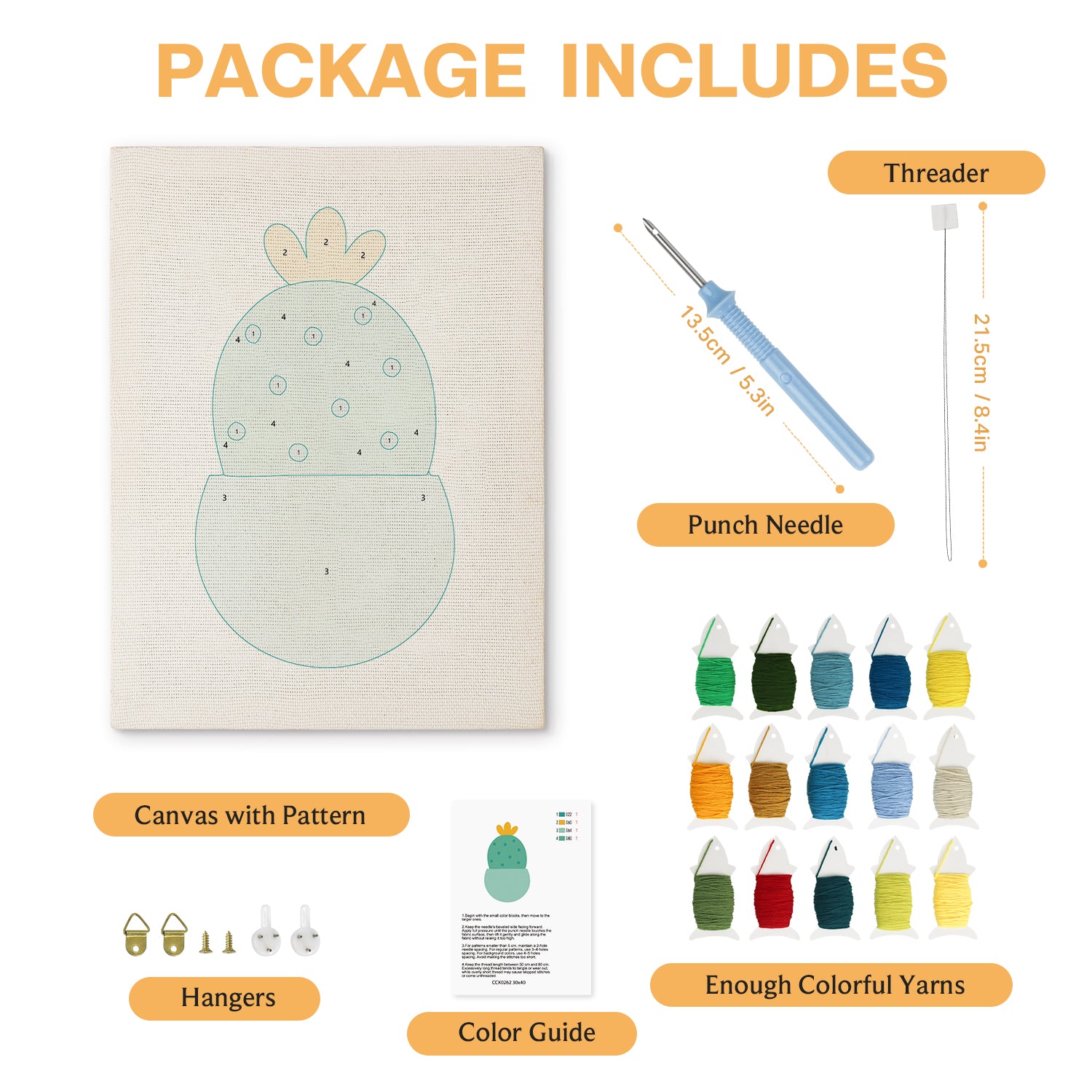 Includes premium threads, a punch needle tool, sturdy fabric, an embroidery hoop, and an easy guide to get you started.