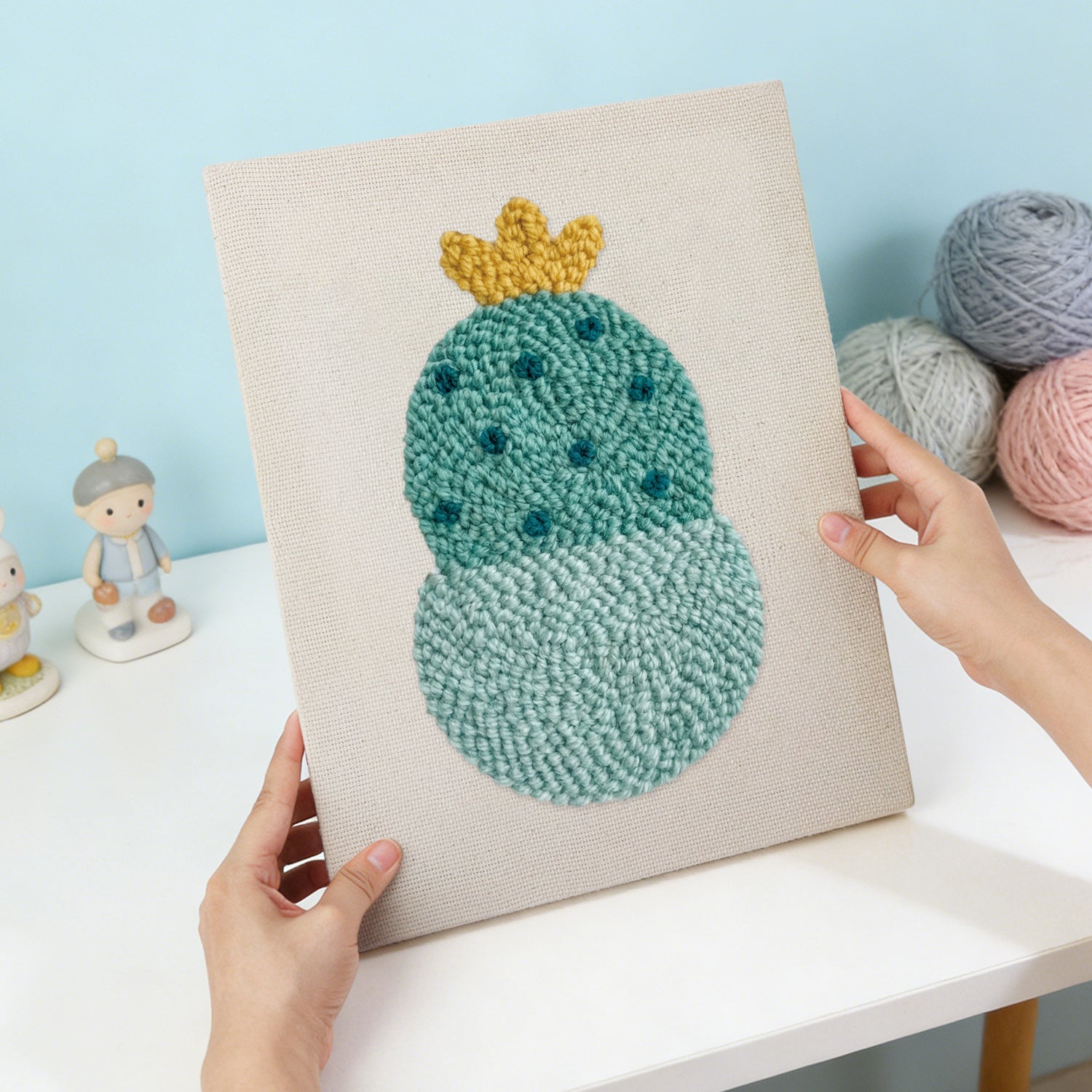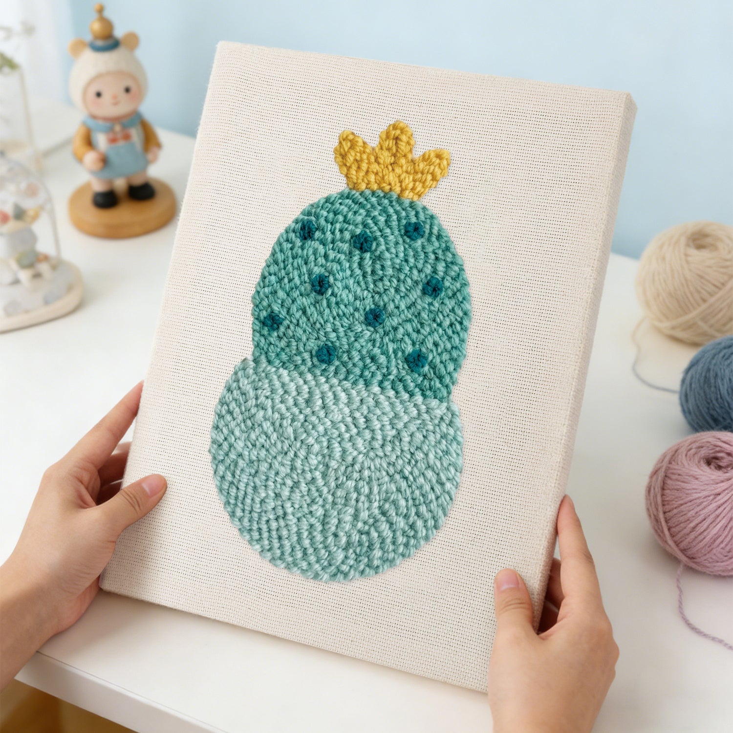 I wasn’t sure what to expect, but the canvas is sturdy and the yarn feels soft and premium. The finished piece looks textured and professional — not like a beginner craft at all.