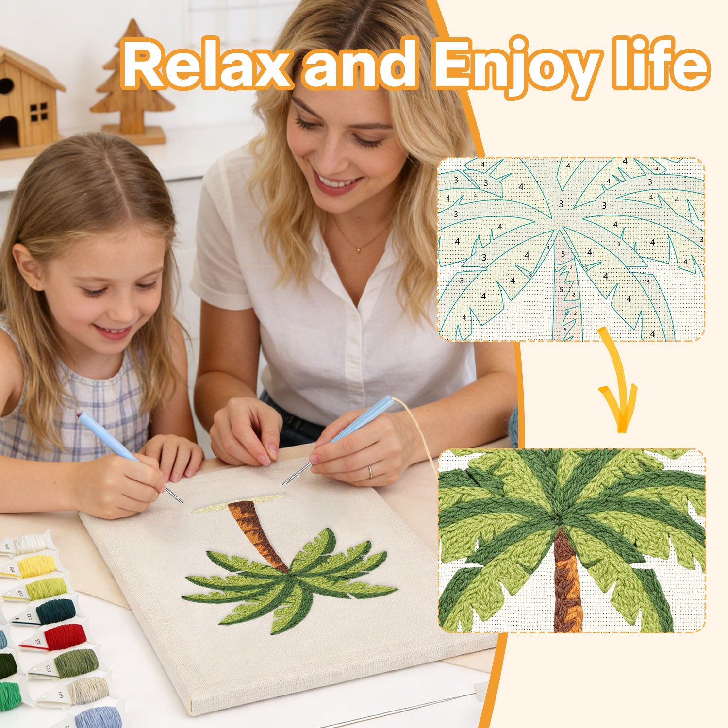 • “This has become my favorite way to unwind after a long day. I make a cup of tea, turn on some music, and just focus on stitching. It’s surprisingly calming and so satisfying to see the design come to life. The finished piece looks beautiful in my living room!”