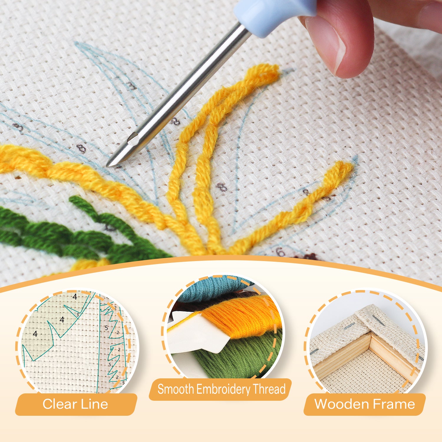 No complicated stitching charts or counting required. Just follow the printed outline and enjoy the process.
