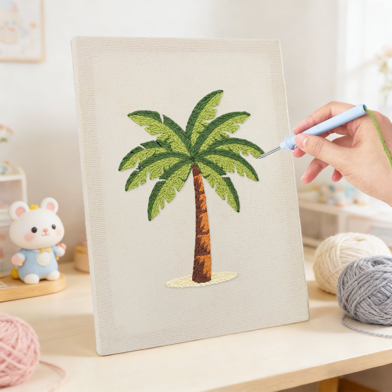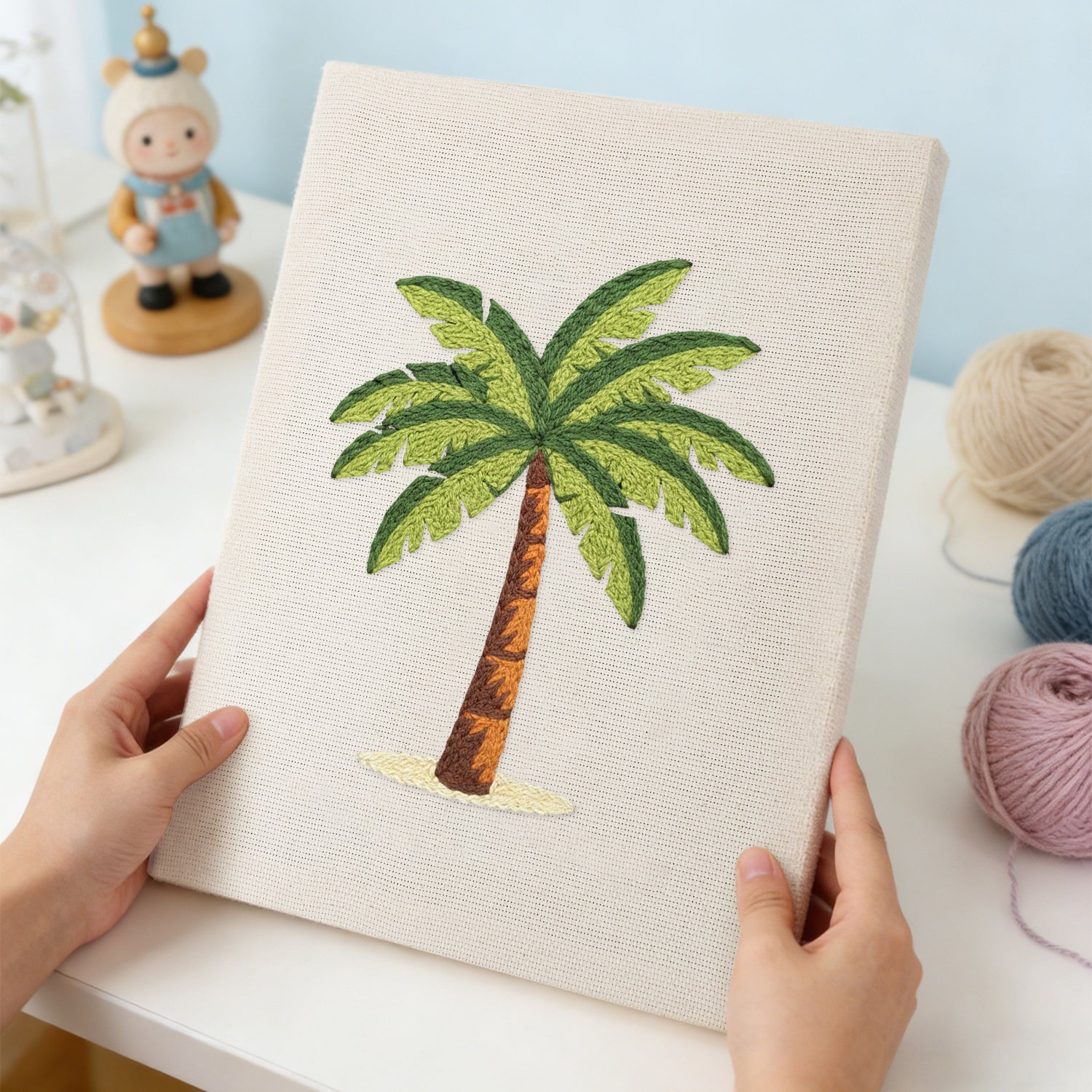 I wasn’t sure what to expect, but the canvas is sturdy and the yarn feels soft and premium. The finished piece looks textured and professional — not like a beginner craft at all.